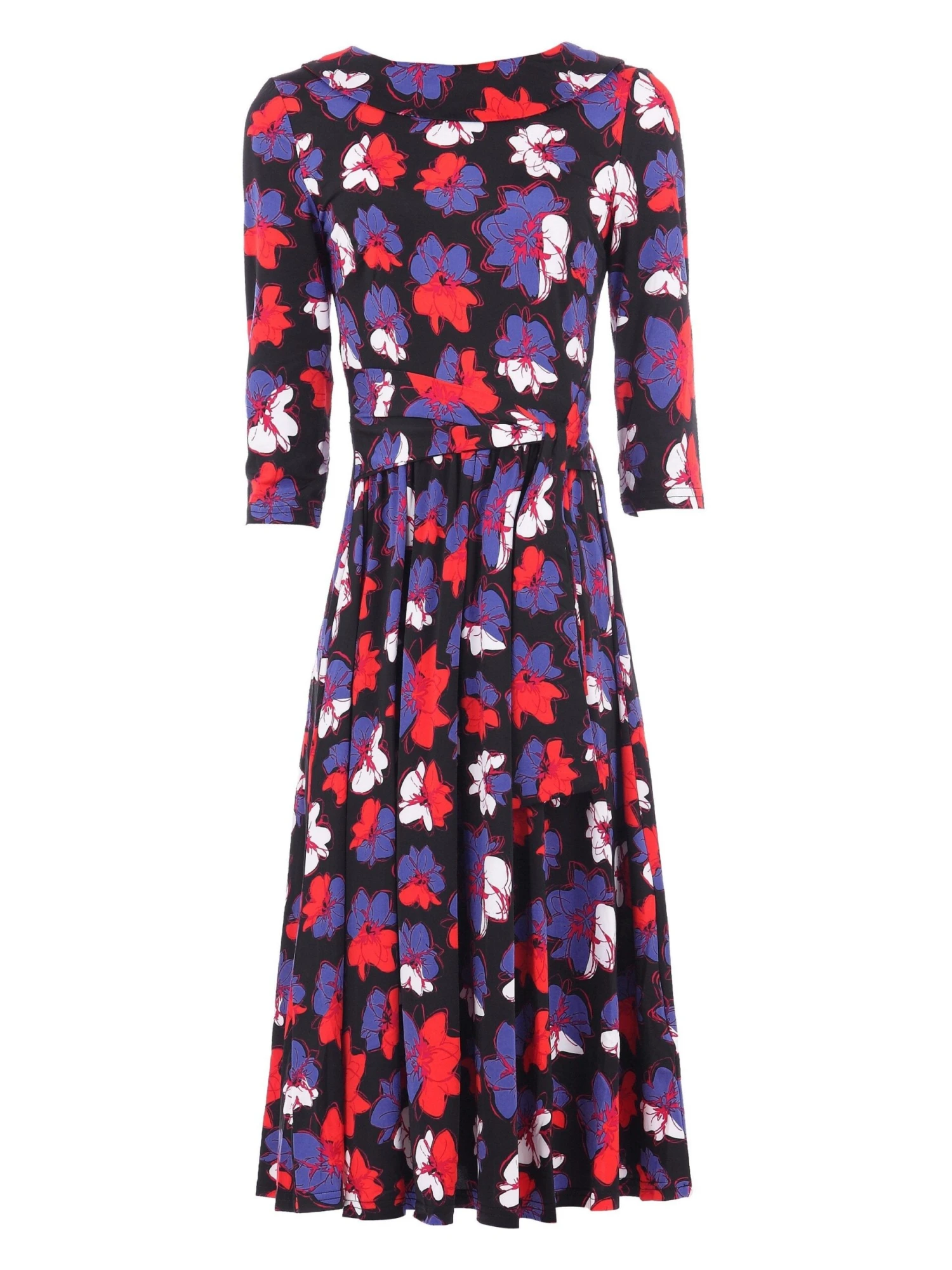Work a vintage glamour look in this stunning dress from Jolie Moi. Crafted from a light knitted fabric, this vintage-inspired style nips in the waist with a tie belt for a chic hourglass silhouette. 3/4 sleeves and an exaggerated roll collar finish the design. Team with court shoes for a look that takes you from desk to dinner.Â