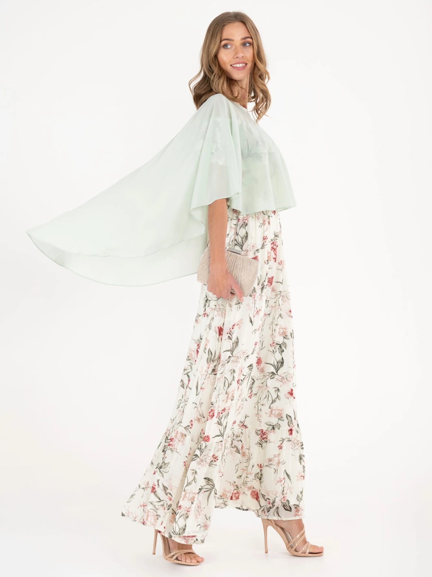 This Cali chiffon cover up features a flattering boat neck and a waterfall dipped hem; It is super good for hiding shoulders; Pair nicely with your party dress, strapless dress, pencil skirt and even camisole, bodice. Great for wedding, evening, ceremony, party, cocktail party, prom and vacation beach.