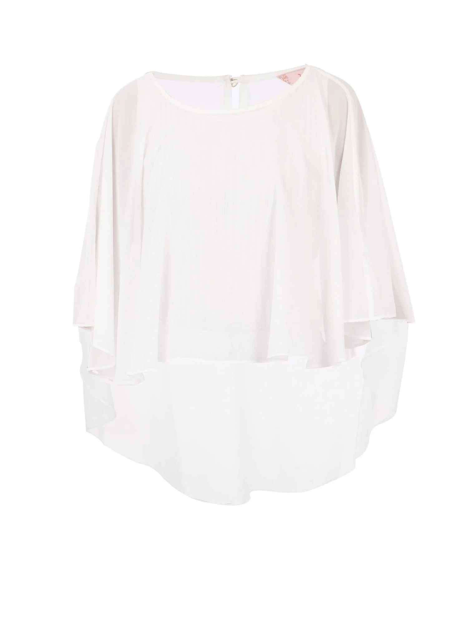 This Cali chiffon cover up features a flattering boat neck and a waterfall dipped hem; It is super good for hiding shoulders; Pair nicely with your party dress, strapless dress, pencil skirt and even camisole, bodice.