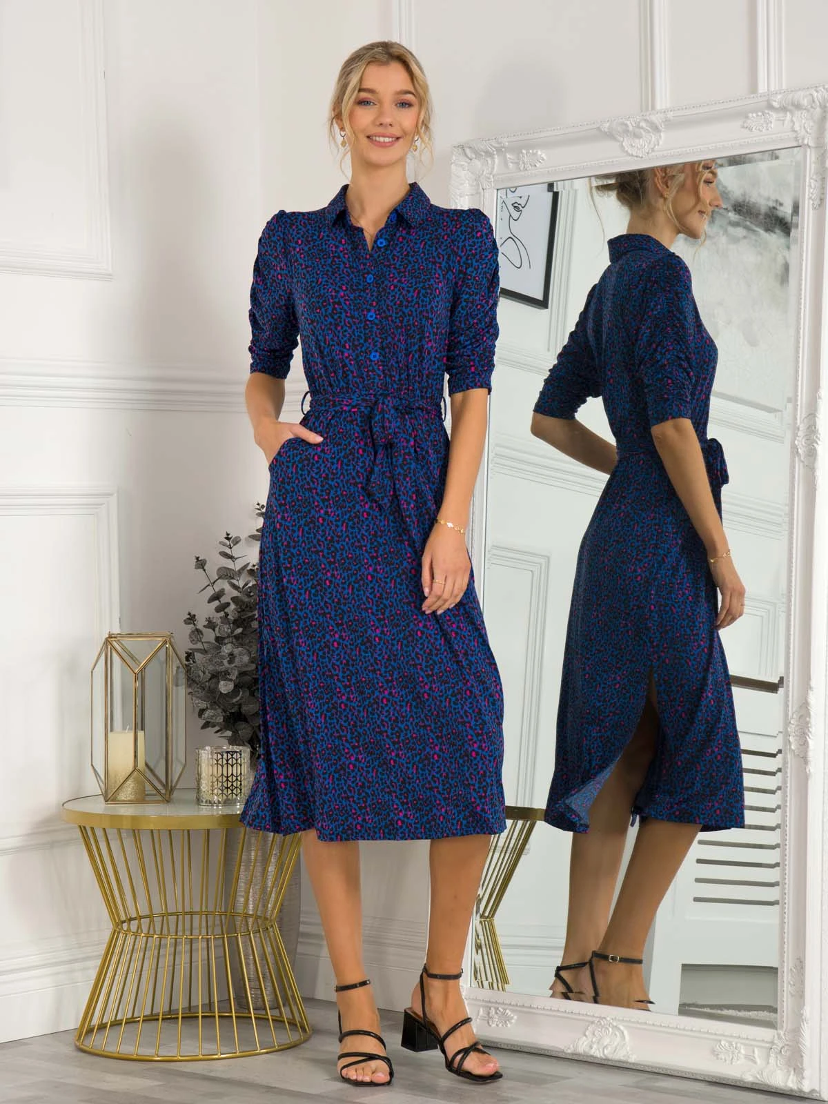 Cut from a premium jersey fabric, this stunning dress from Jolie Moi is a smart addition to your new season wardrobe. This statement piece is framed by a smart shirt collar, button fastening front and flattering ruched elbow-length sleeves. Completed with two side pockets and a self-tie belt which adds waist definition. Falling to a midi length, it’s elegant and stylish whilst having a pop of colour and a youthful feel.