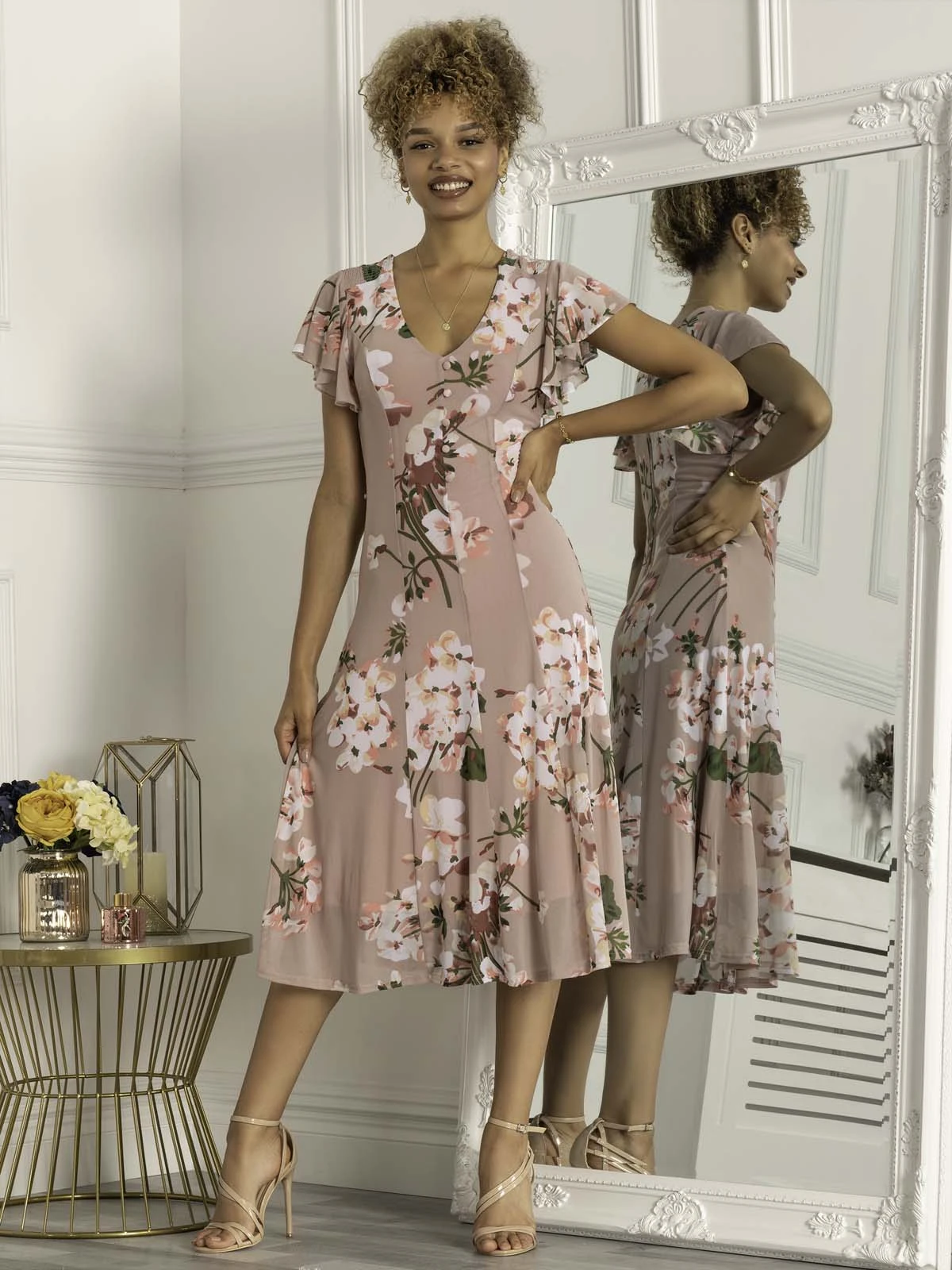 Get the beautiful Essie knitted mesh dress from Jolie Moi into your collection this season. Framed with a flattering wrap over v-neckline and short angel sleeves, it will lend a feminine feel to your wardrobe. Complete with invisible back zip fastening, decorative front buttons, and fully lined for comfort.