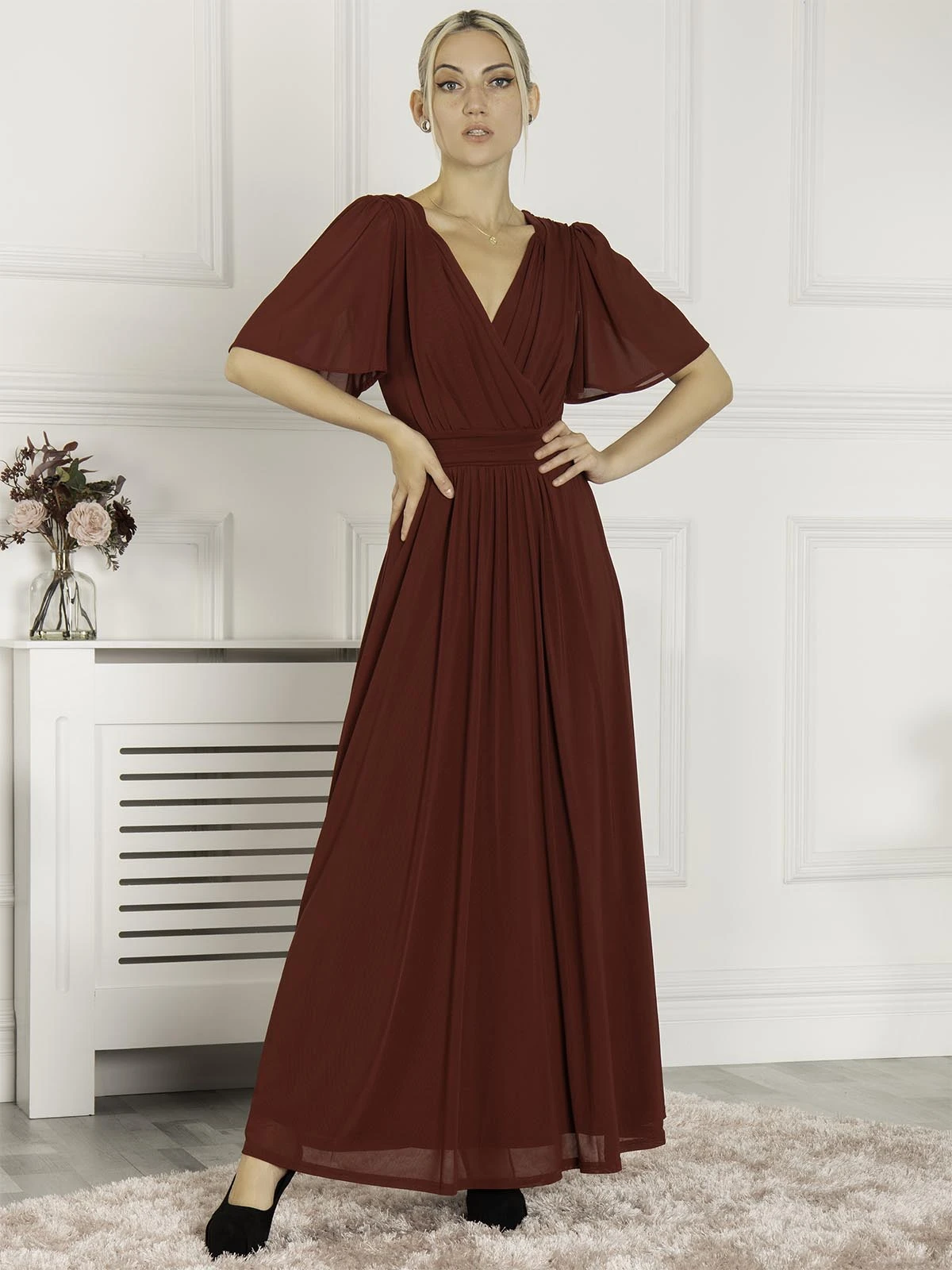 Create a sophisticated silhouette with this Wrap Maxi dress from Jolie Moi. Made from smooth jersey and flattering the figure in a fit and flare style, this elegant dress features a V-neckline with pleated wrap front and ruched waist. Lined through the bodice, this piece pulls on for easy wear