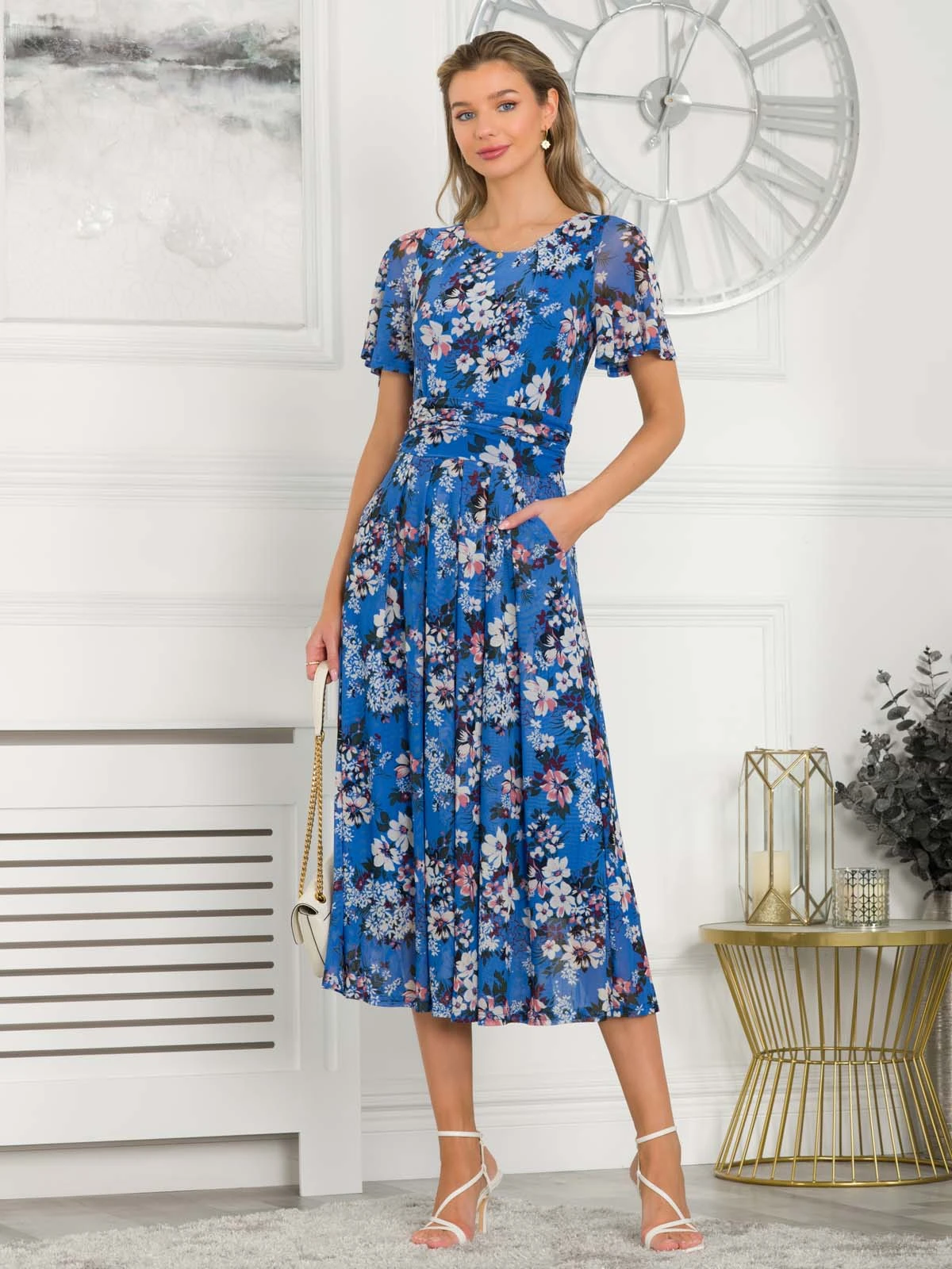 Flaring out at the hem for added movement, this midi dress by Jolie Moi boasts a floral flourish for added appeal. Â