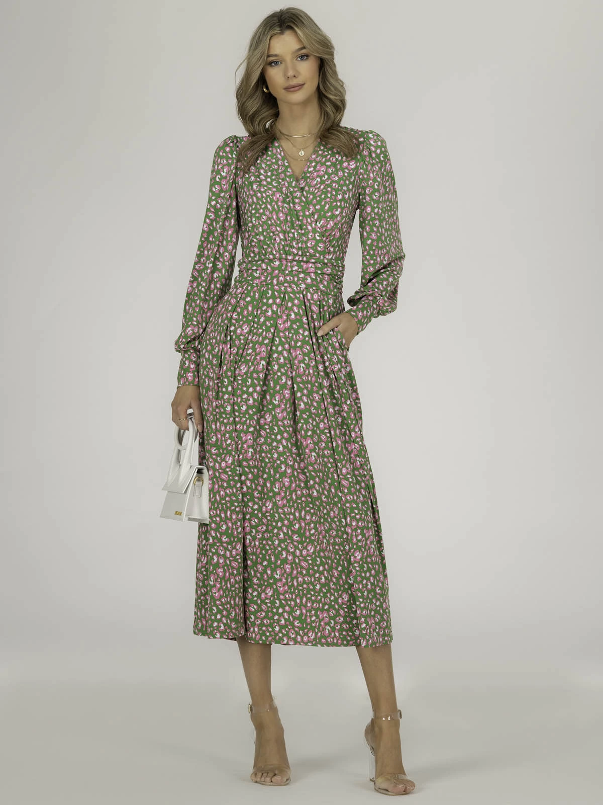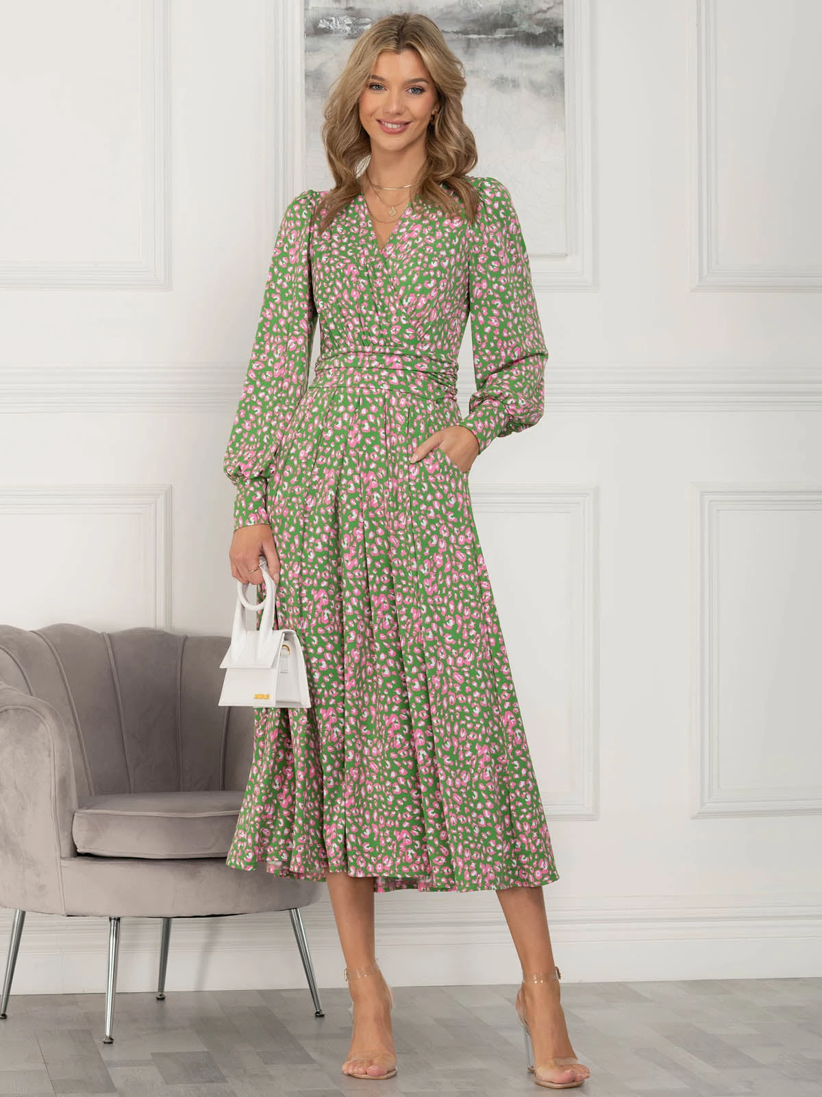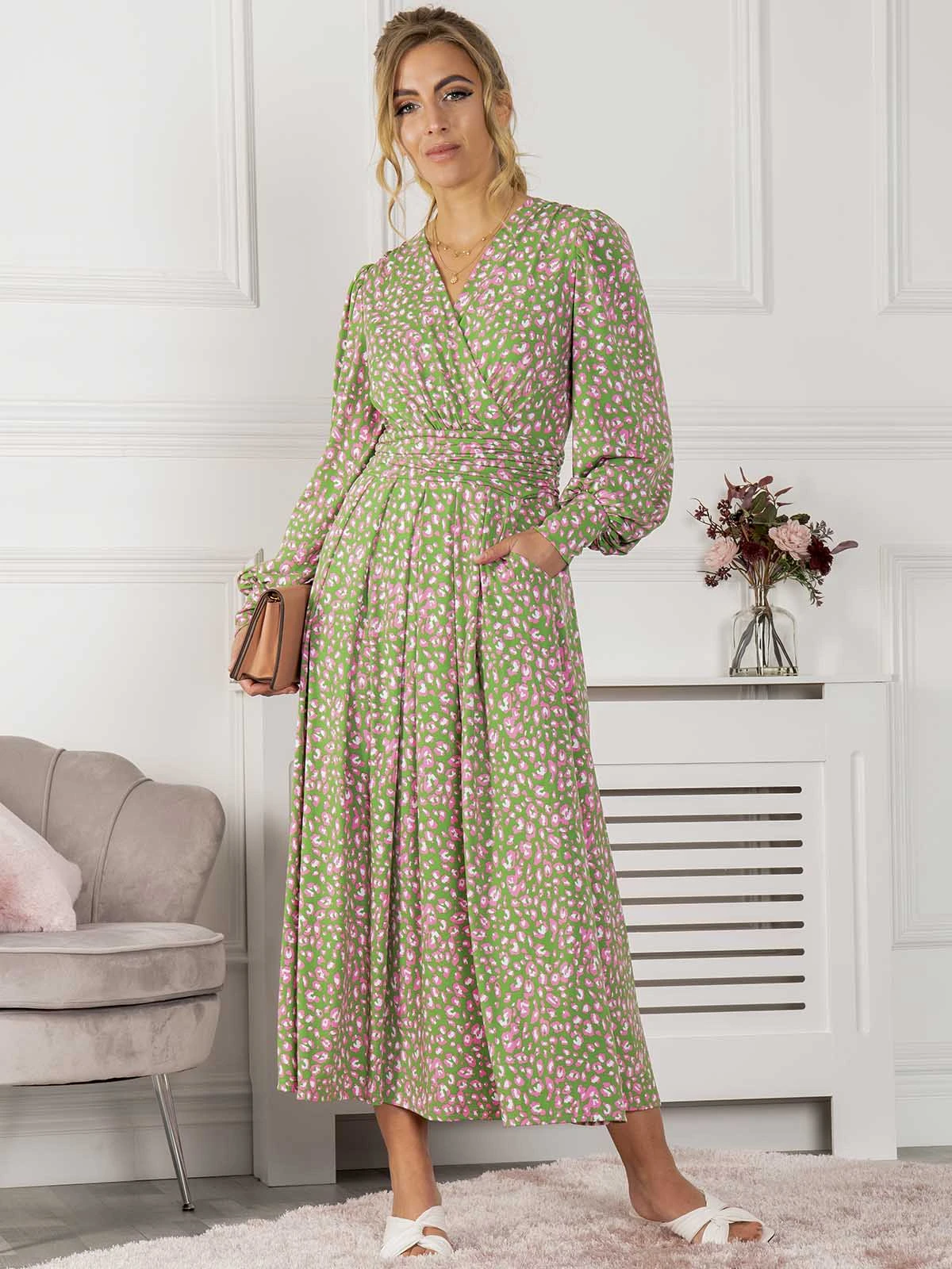 Elegant from head to toe, this dress from Jolie Moi features a simple but distinctive animal print pattern that will draw everyone’s attention to you. Versatile with its elegant wrap over v-neckline and smart long sleeves, it is completed with functional pockets and a ruched elasticated waistband which draws in your silhouette for a form-flattering fit.