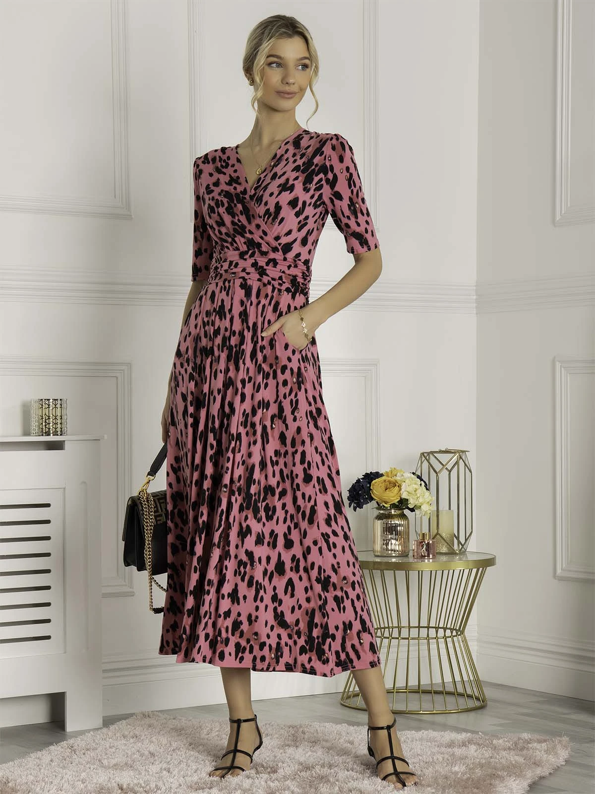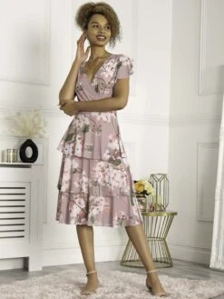 With a wrap-over front and short sleeves, it is a care-free option for daytime dressing.