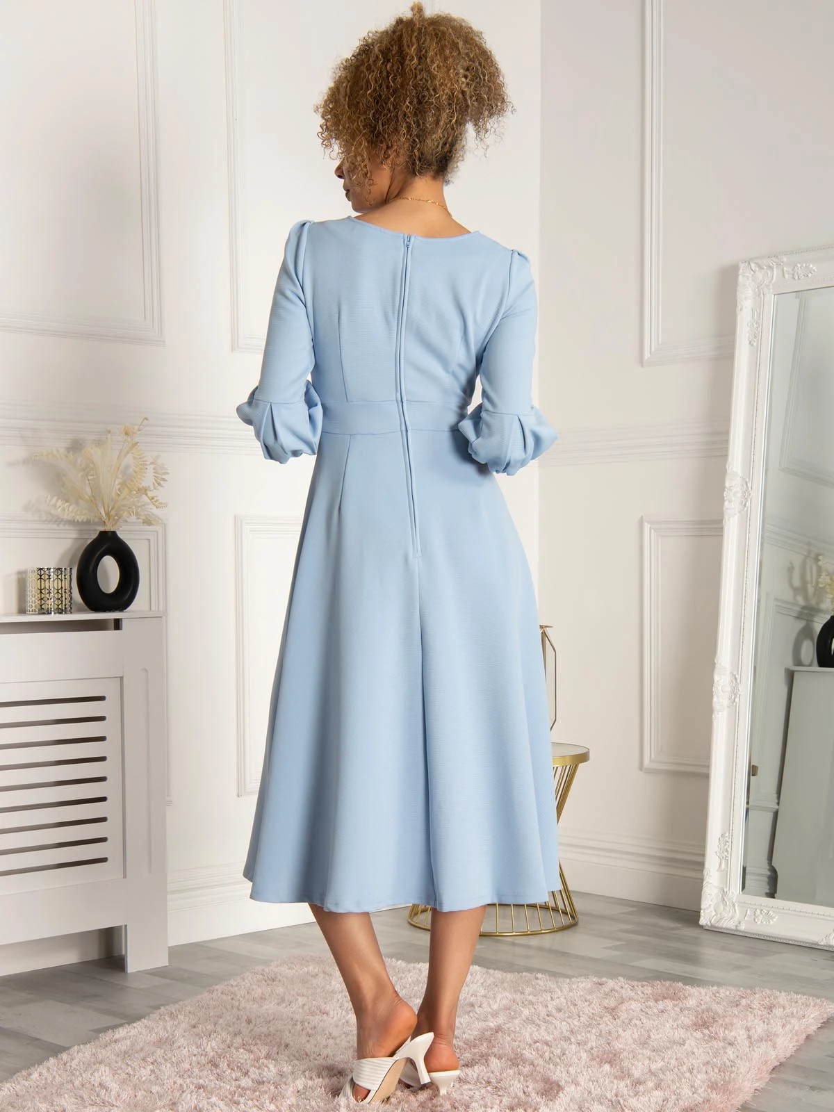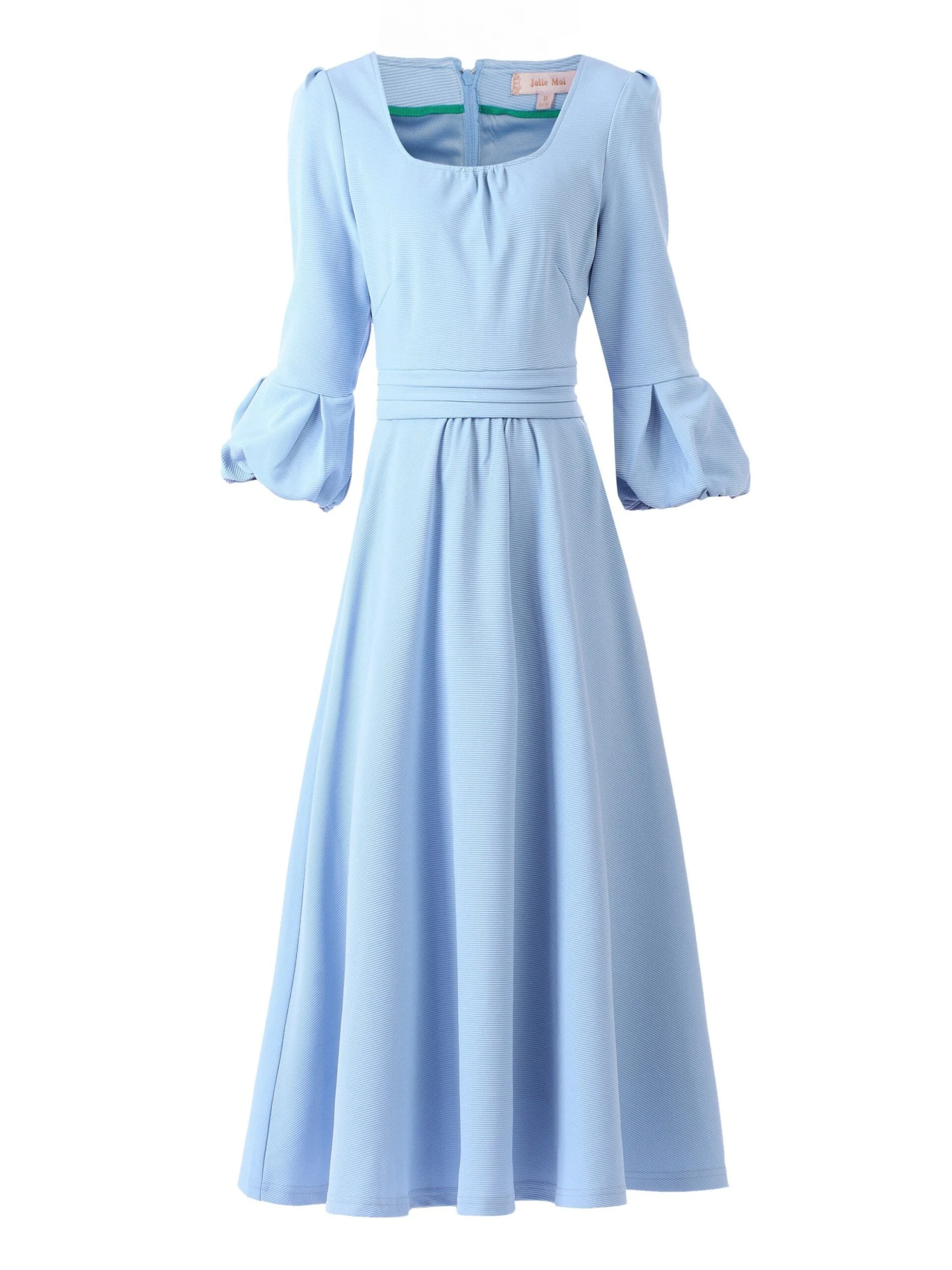 Carve an elegant shape in this Flare Midi Dress by Jolie Moi. Crafted from a medium weight textured fabric with a hint of stretch, this piece features a flattering fit and flare cut and boasts three-quarter length bell sleeves and a distinctive scoop neckline. Completed with a concealed center back sip fastening, it falls to an on-trend midi length. Fully lined and is finished with side pockets for those essential items. Â