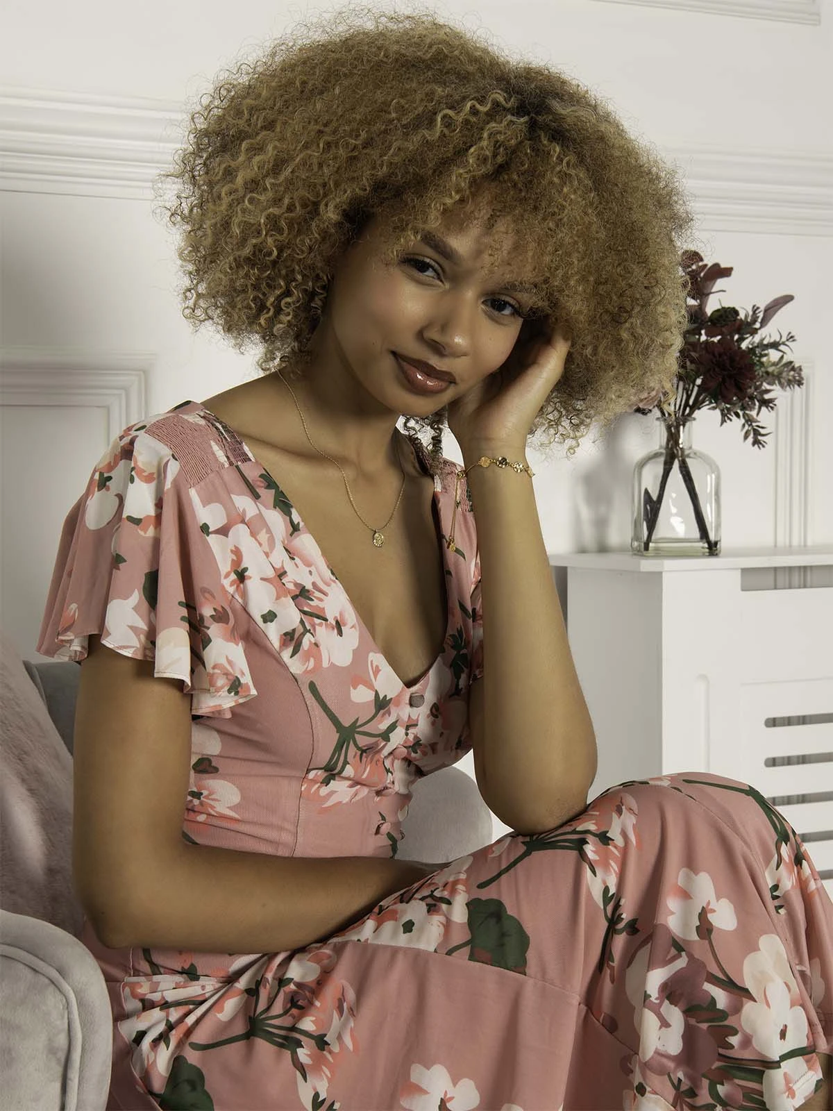 Get this beautiful Jolie Moi dress into your new season going-out wardrobe. Framed with a flattering wrap over v-neckline and flare capped sleeves, it will lend a feminine feel to your wardrobe. Complete with invisible back zip fastening, side pockets, and fully lined for comfort. This piece wears well with your favourite heels and jewellery for all-out glamour.