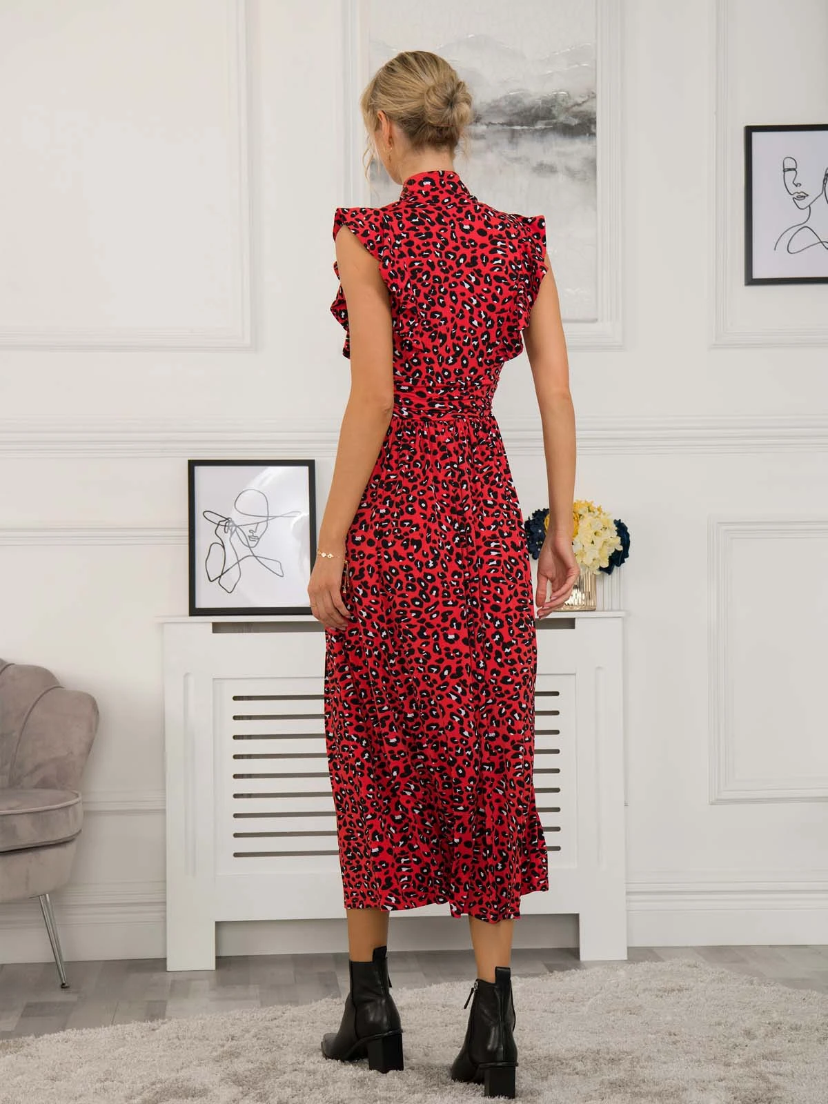 This dress showcases a ruffle shoulder detail that we just can’t get enough of. Your go-to print just got better in this Doris dress from Jolie Moi. Made from smooth jersey and cut to a generous fit & flare fit, this printed maxi dress is designed with a smart funnel neck with a twisted collar and keyhole cut-out detailing at the front. Finished with side pockets for easy wear and a nipped-in ruched waistband to create a smooth shape and falls to the ankle adding an elegant flow. It would be a beautiful choice for a wedding guest outfit or summer socials.Â