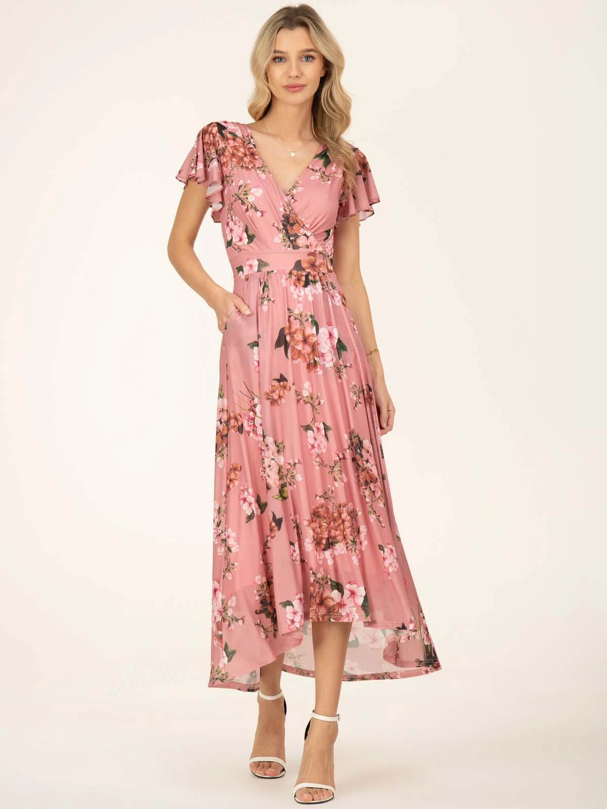 An elegant option for all your special occasions, this Eliza maxi dress by Jolie Moi is fashioned with pretty florals for added charm. Made from soft mesh fabric, it’s framed with a v-neckline and soft pleating at the shoulders, while the fabric-covered buttons trailing down the front nods to glamorous vintage silhouettes. Fully lined and completed with concealed back zip fastening, it is comfortable and easy to wear. Add strappy sandals and a clutch for an event-ready look.