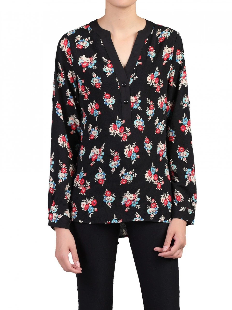Refresh your new season wardrobe with this floral print blouse from Jolie Moi. Crafted from a soft, fluid fabric for a beautiful drape, this top boasts a free-spirited floral print, block-color collar, long sleeves and a short front placket with button fastenings. Tuck into slim jeans and pair with boots for a relaxed, weekend look.