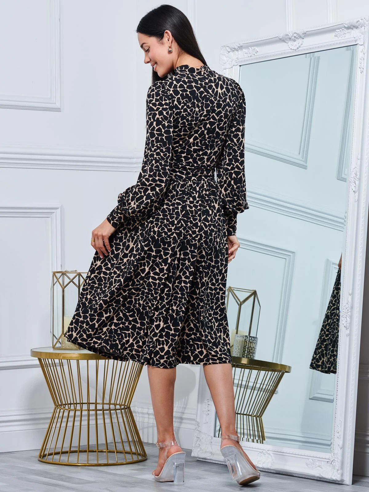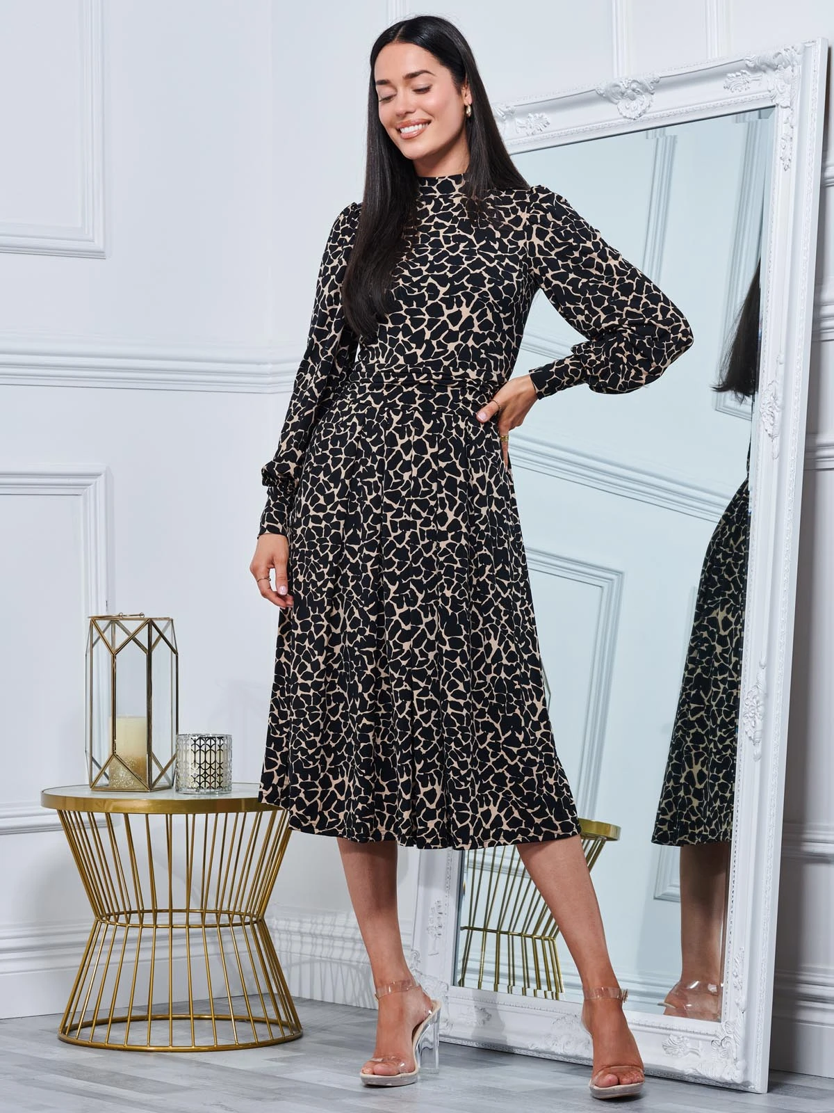 Smartening your look with this timeless midi dress from Jolie Moi, it is ideal for work or play. Framed with a turtle neckline and long sleeves, this piece nips you in all the right places. This effect is repeated around the elasticated waistline and long voluminous sleeves. A simple style that ensures an effortless, elegant look for smart or casual days.