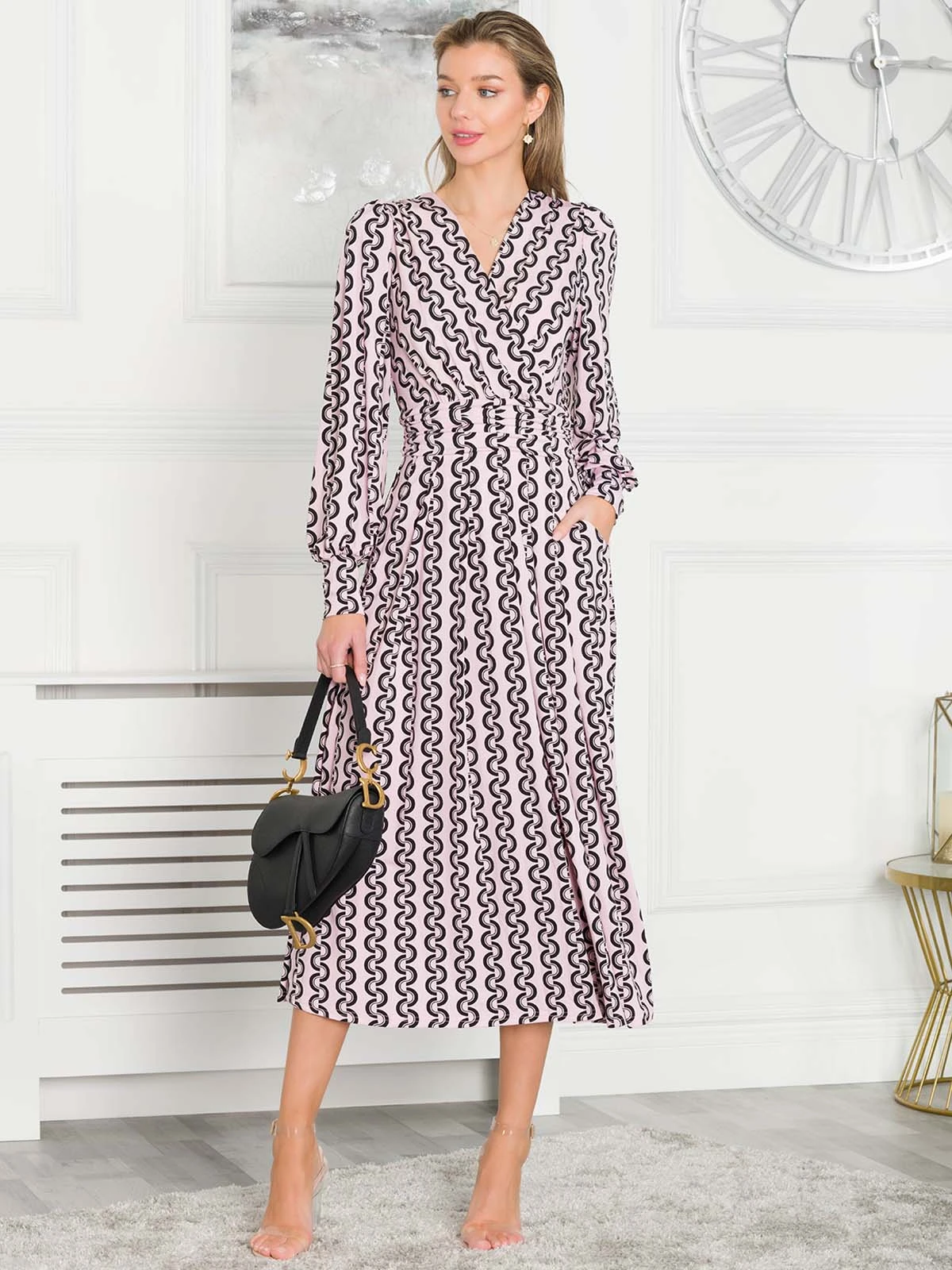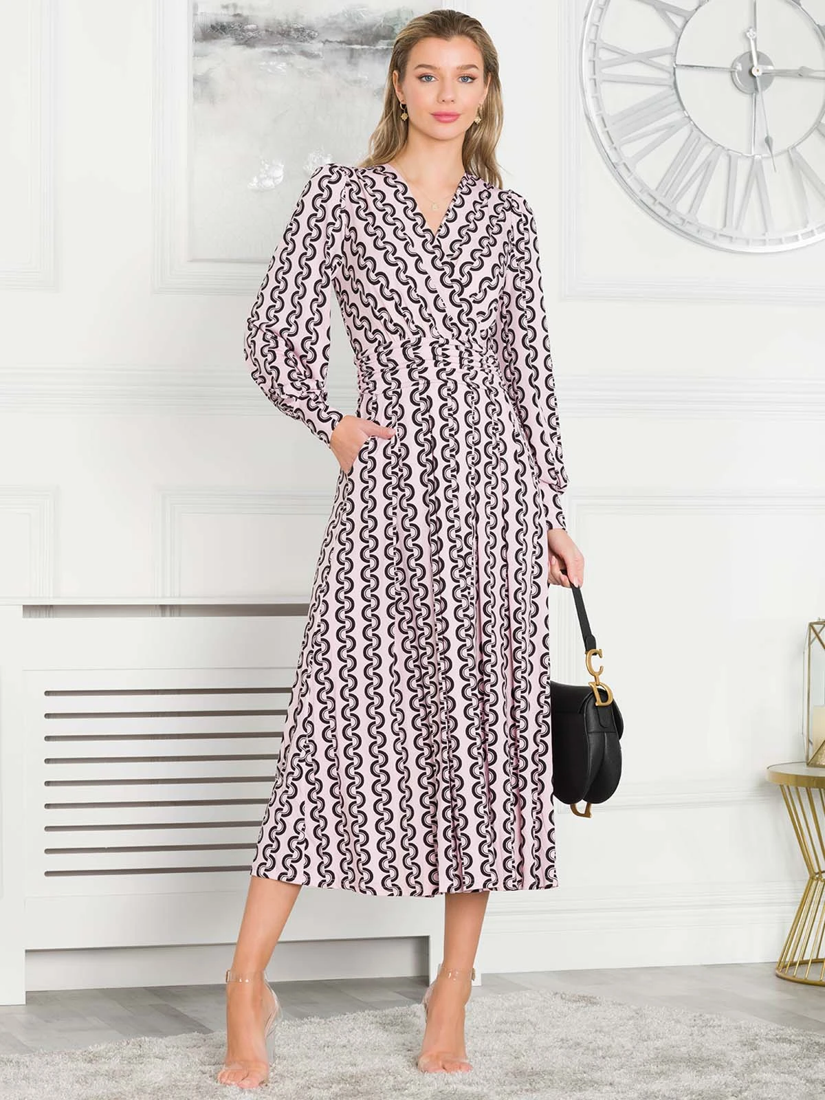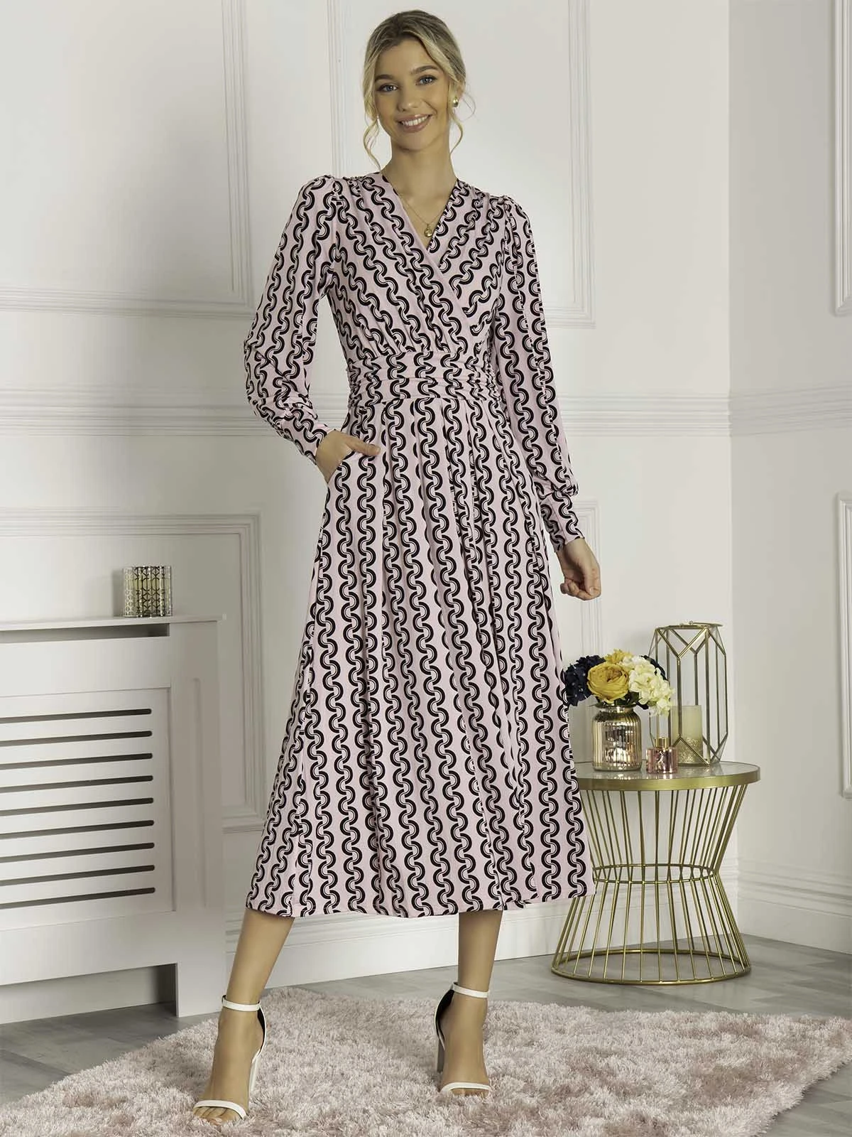 Graceful from top to bottom, this dress from Jolie Moi features a simple but striking animal print which makes it truly distinctive. Versatile with its elegant wrap over v-neckline and smart long sleeves, it is completed with functional pockets and a ruched elasticated waistband which draws in your silhouette for a form-flattering fit. This piece pulls on with sandals for summer days in the sun.