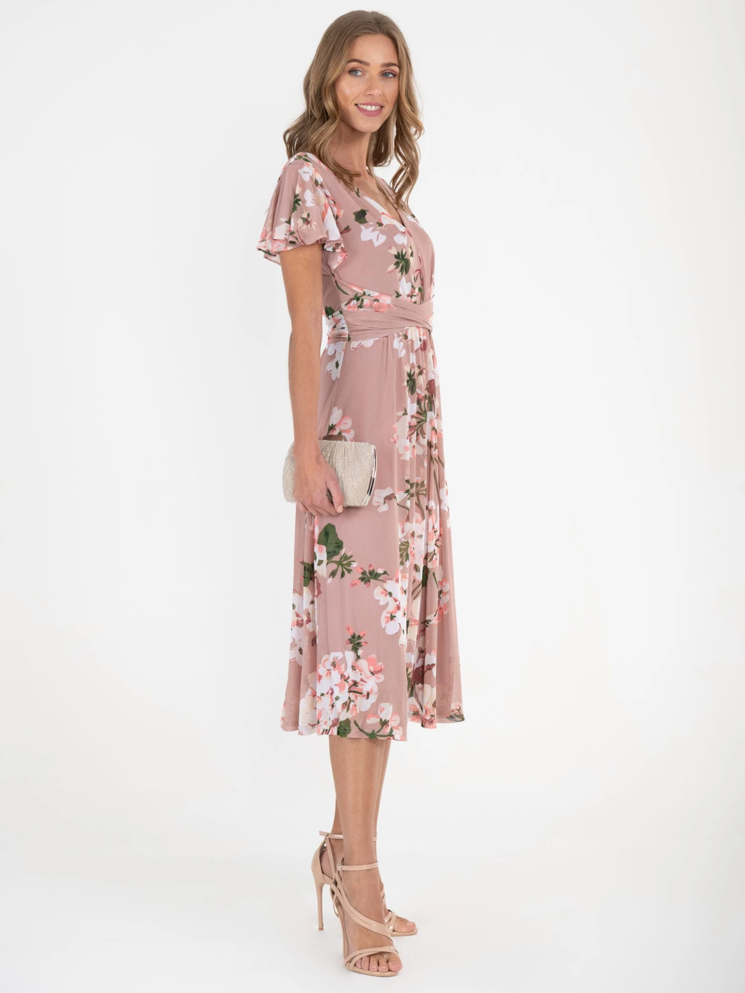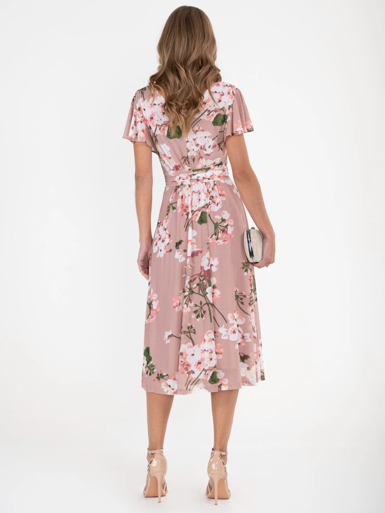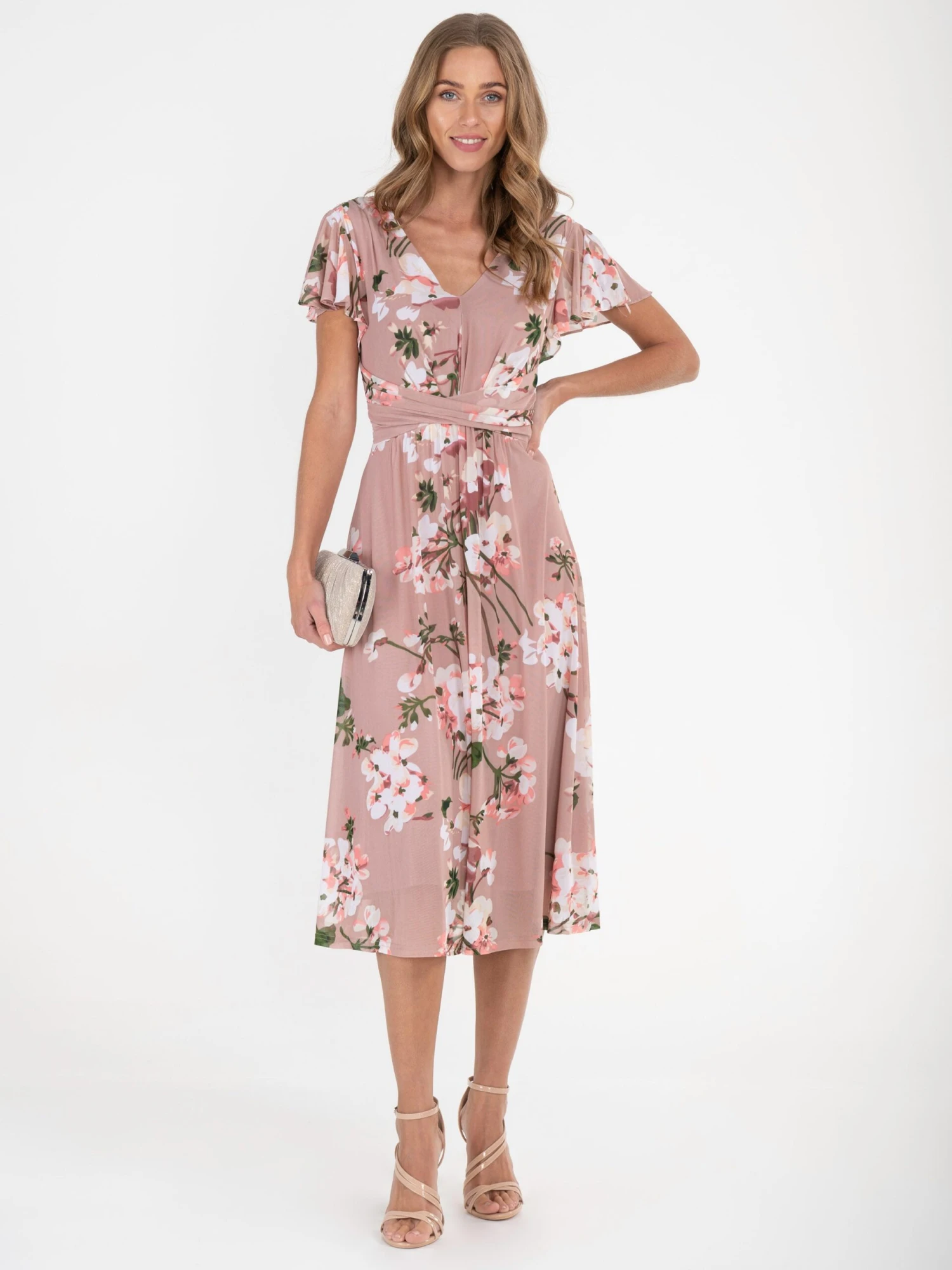 Flaring out at the hem for a feminine silhouette, this midi dress by Jolie Moi is fashioned with pretty florals for added charm. Made from soft MESH fabric and fully lined, it’s framed with a v-neckline and button-through front while seaming at the waist nods to glamorous vintage silhouettes.Â