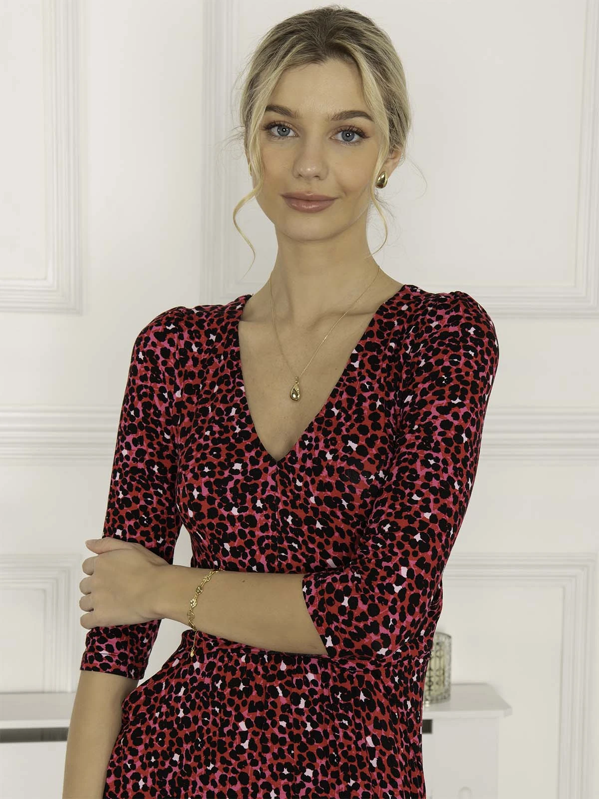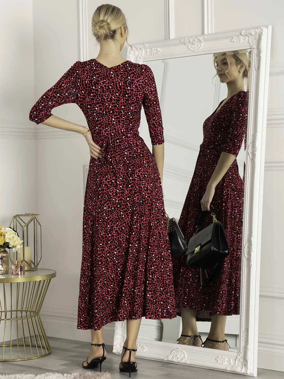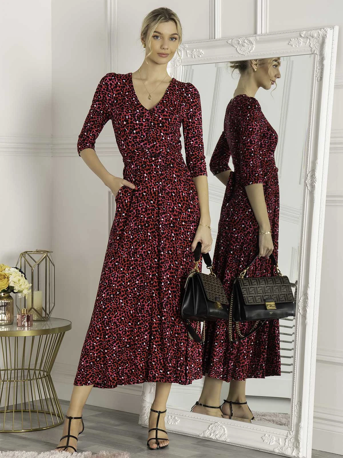 Strike a pose and be an instant head-turner in this dress from Jolie Moi. Cut to a maxi length and best-selling fit and flare silhouette, this style has a classic V neckline and features twist ruching detail at the waist to define your shape before falling to a softly flared ankle length skirt. Adorned in an eye-catching abstract bold print all over, it is finished with 3/4 length sleeves. Add a faux leather jacket, tights and boots for an off duty look to make a statement.