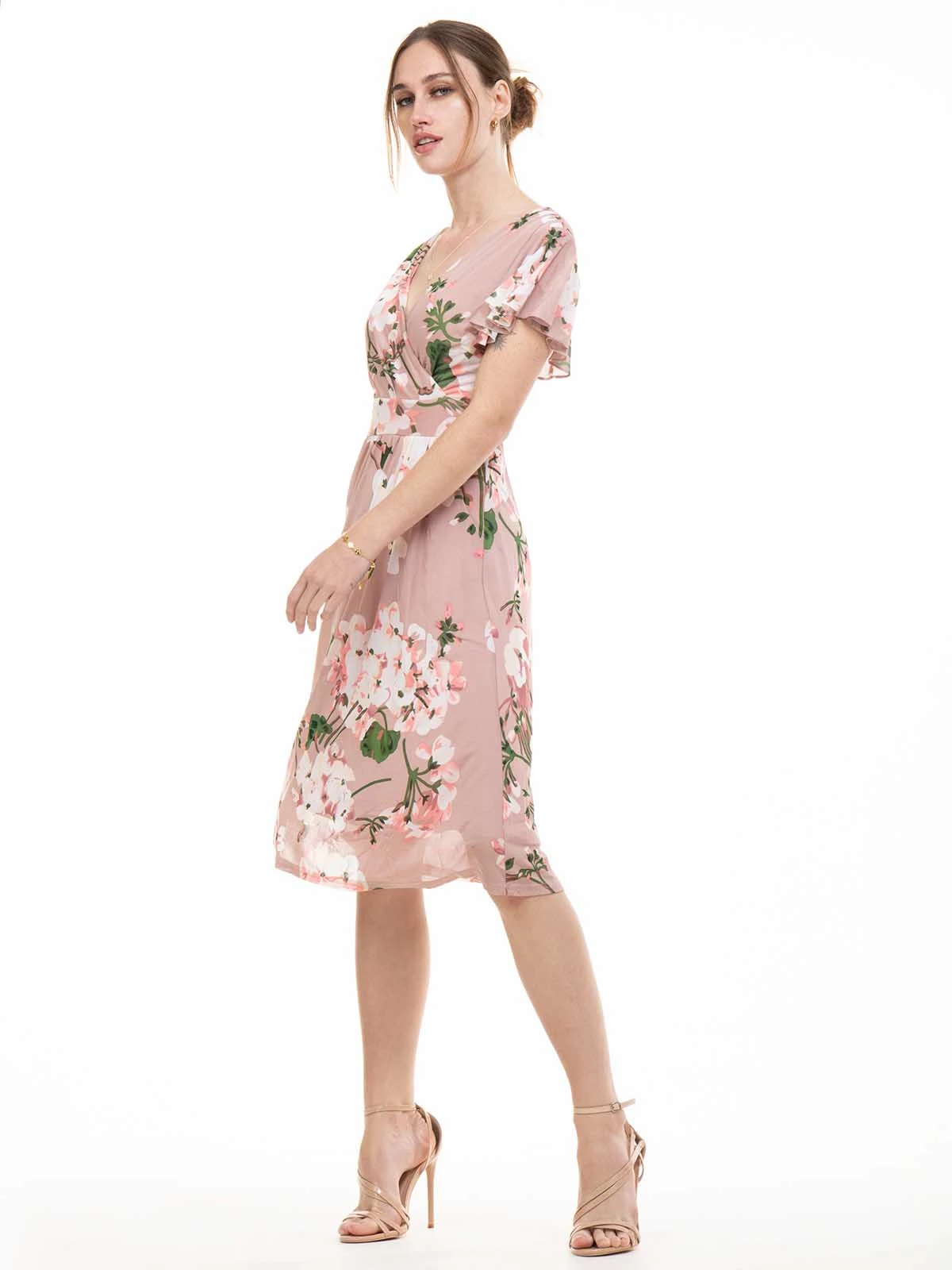 With a refined wrap front, this knee-length dress by Jolie Moi is printed with fresh florals throughout.