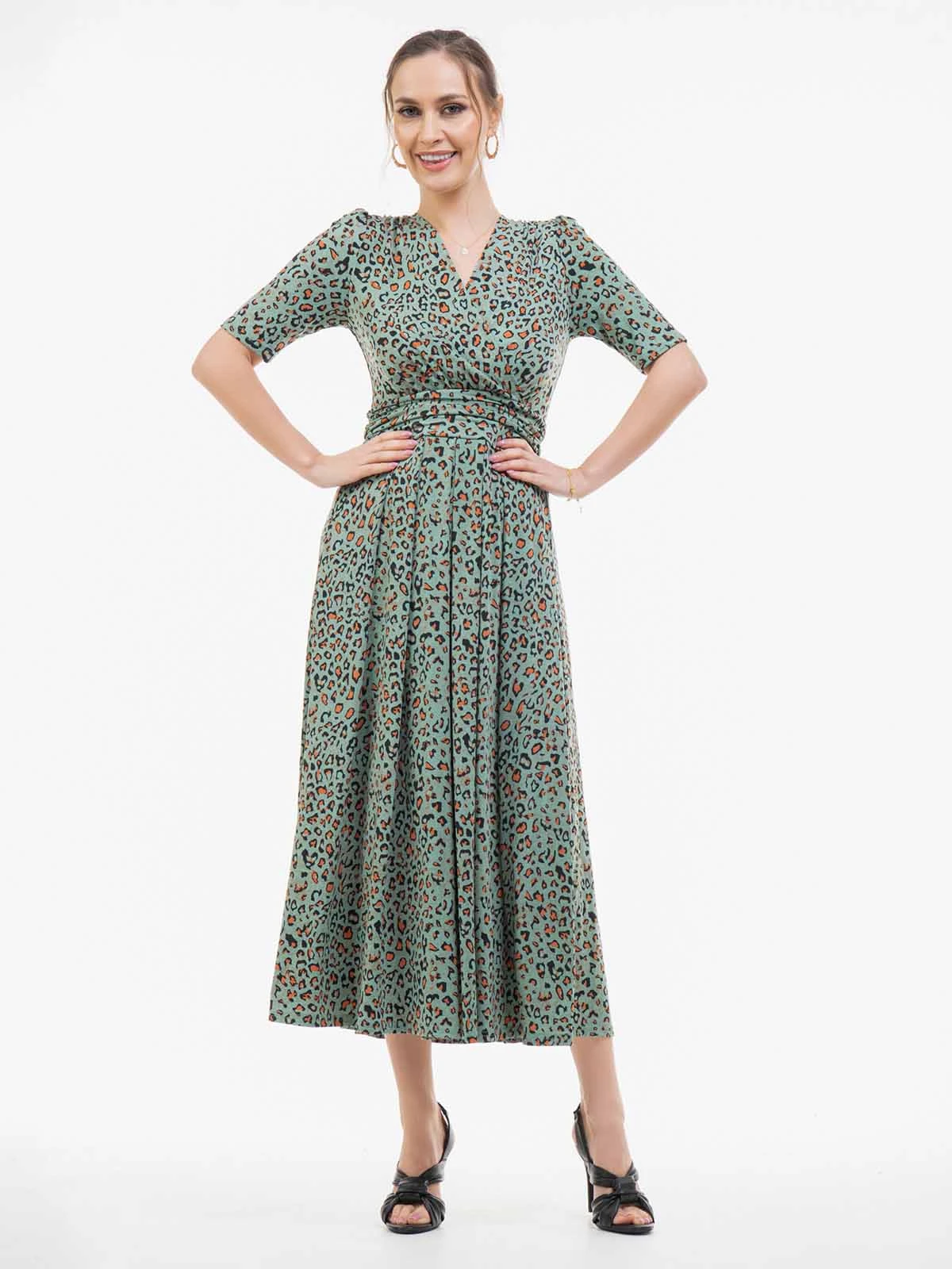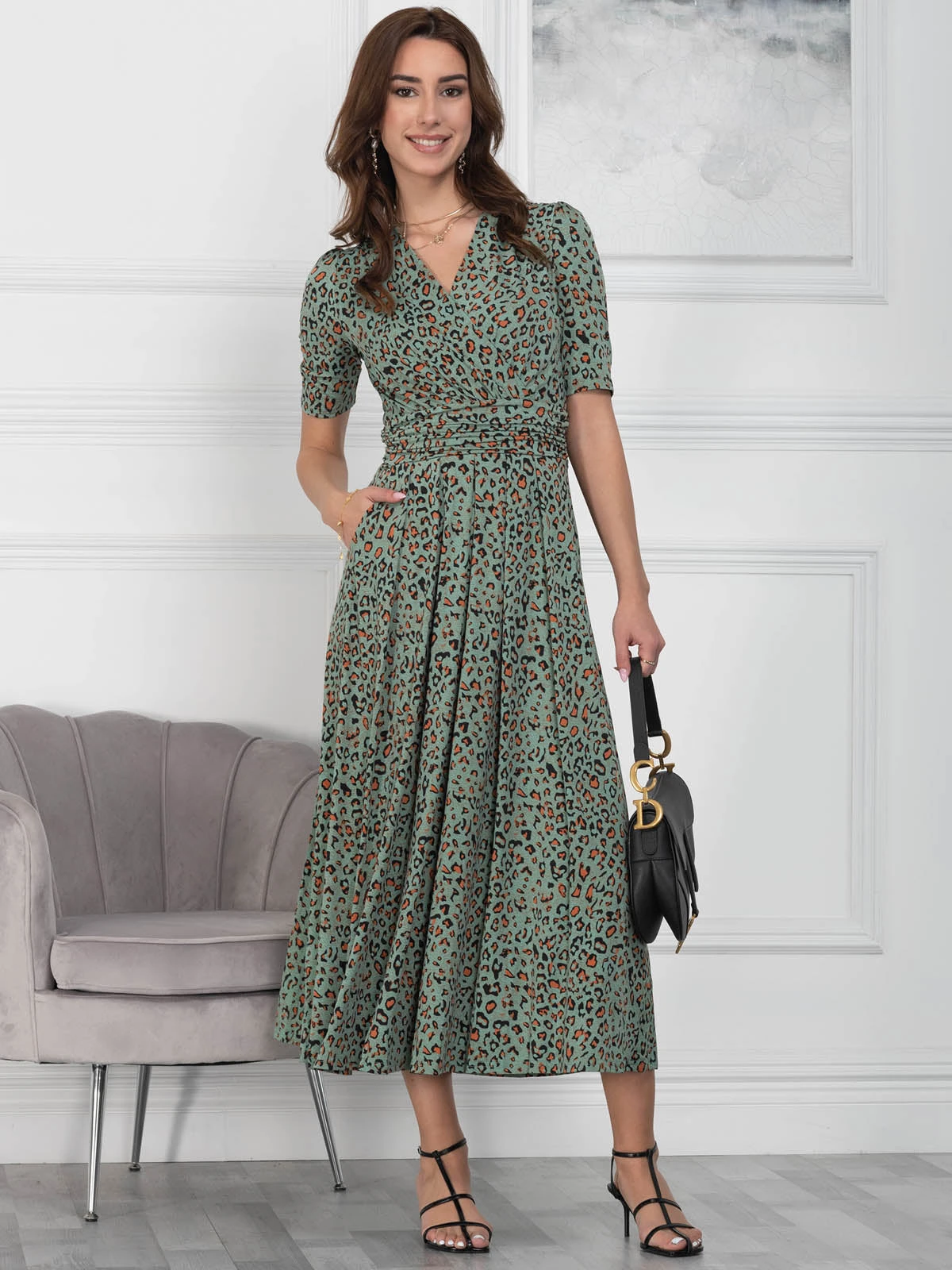Flaring out at the hem for added movement, this maxi dress by Jolie Moi is fashioned with an animal print.