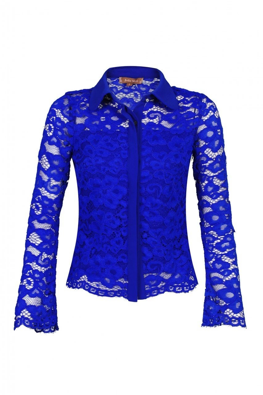 Opt for the delicate texture of lace with this pretty blouse from Jolie Moi. Crafted from a non-stretch corded floral lace, with a cami-style lining for optimum comfort. This shirt style features three-quarter length sleeves, concealed button fastening through the front and a Peter Pan collar with a statement glass button.