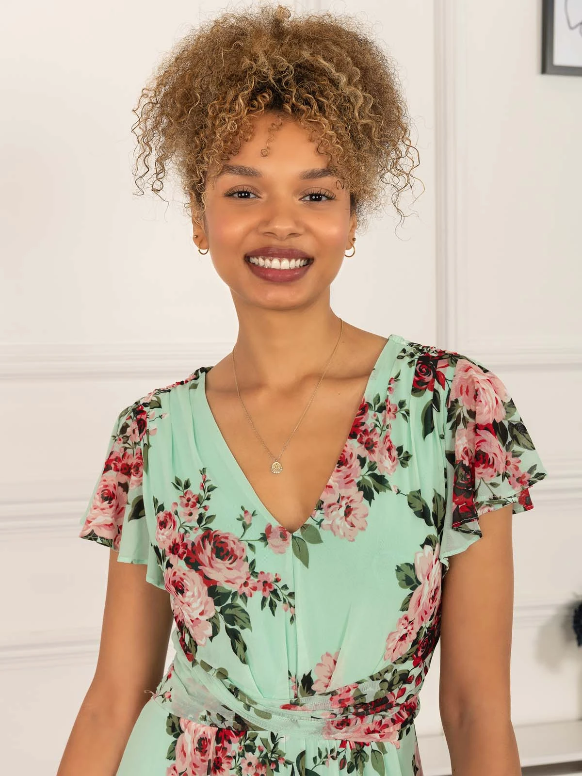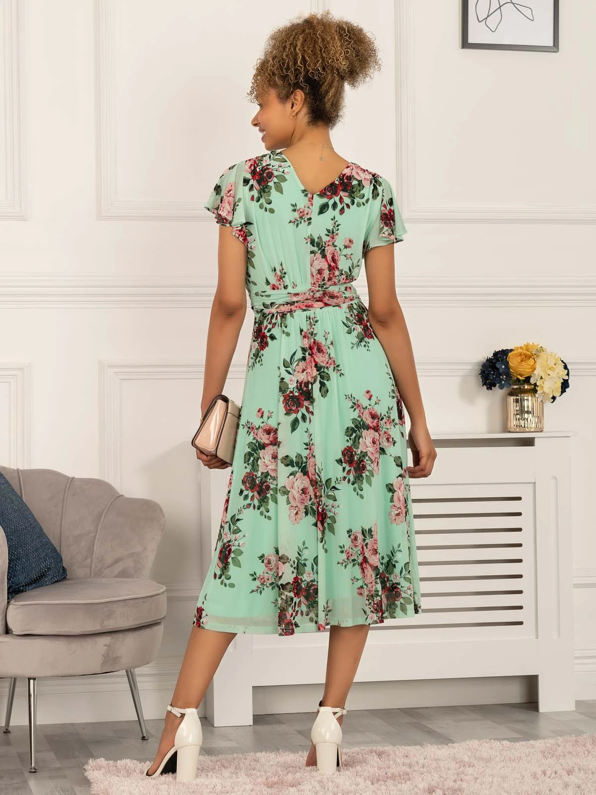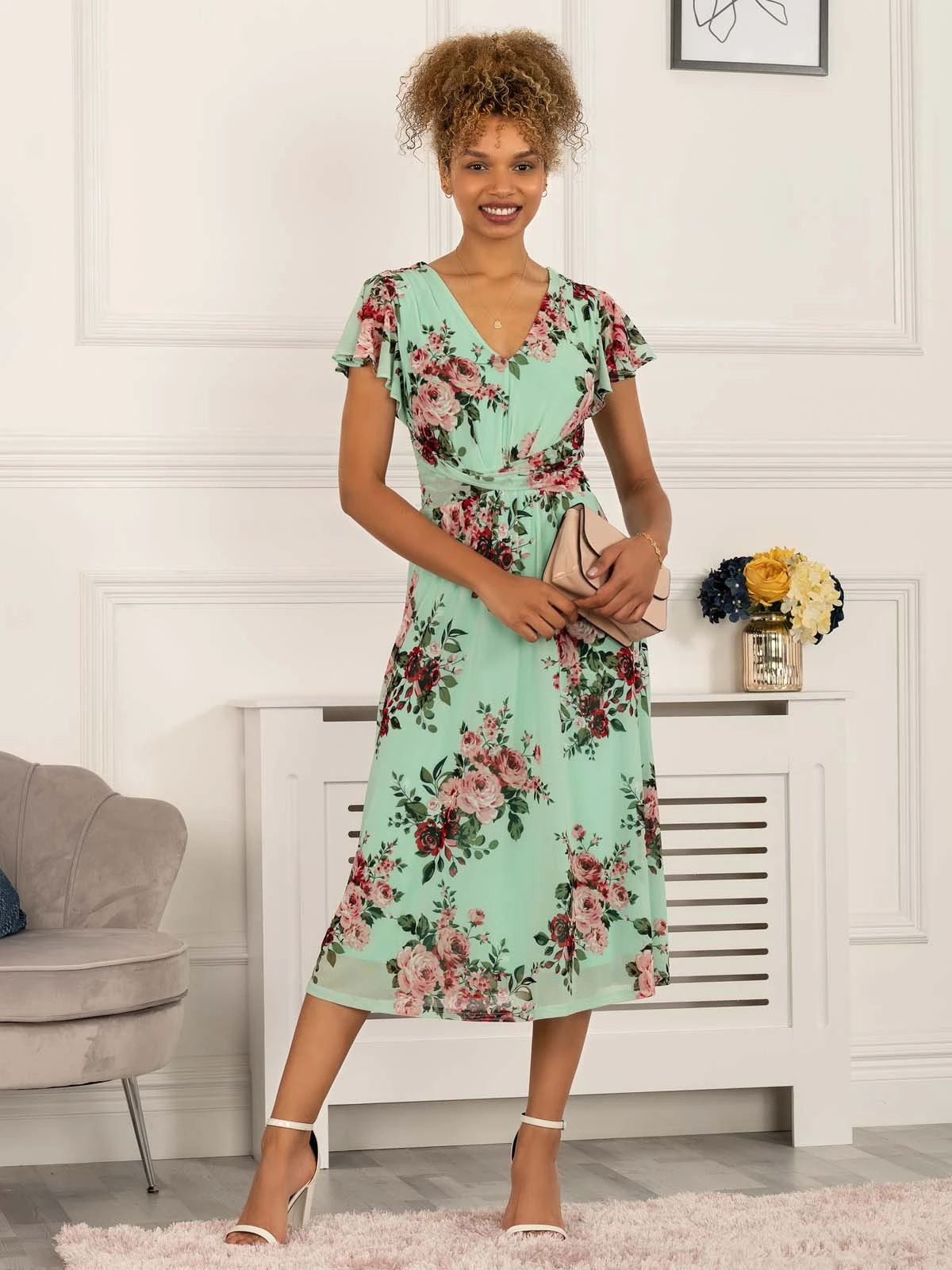 Get this beautiful Jolie Moi dress into your wardrobe this season. Framed with a flattering wrap over v-neckline and flare capped sleeves, it will lend a feminine feel to your wardrobe. Complete with invisible back zip fastening, side pockets, and fully lined for comfort. This piece wears well with your favourite heels and jewellery for all-out glamour.