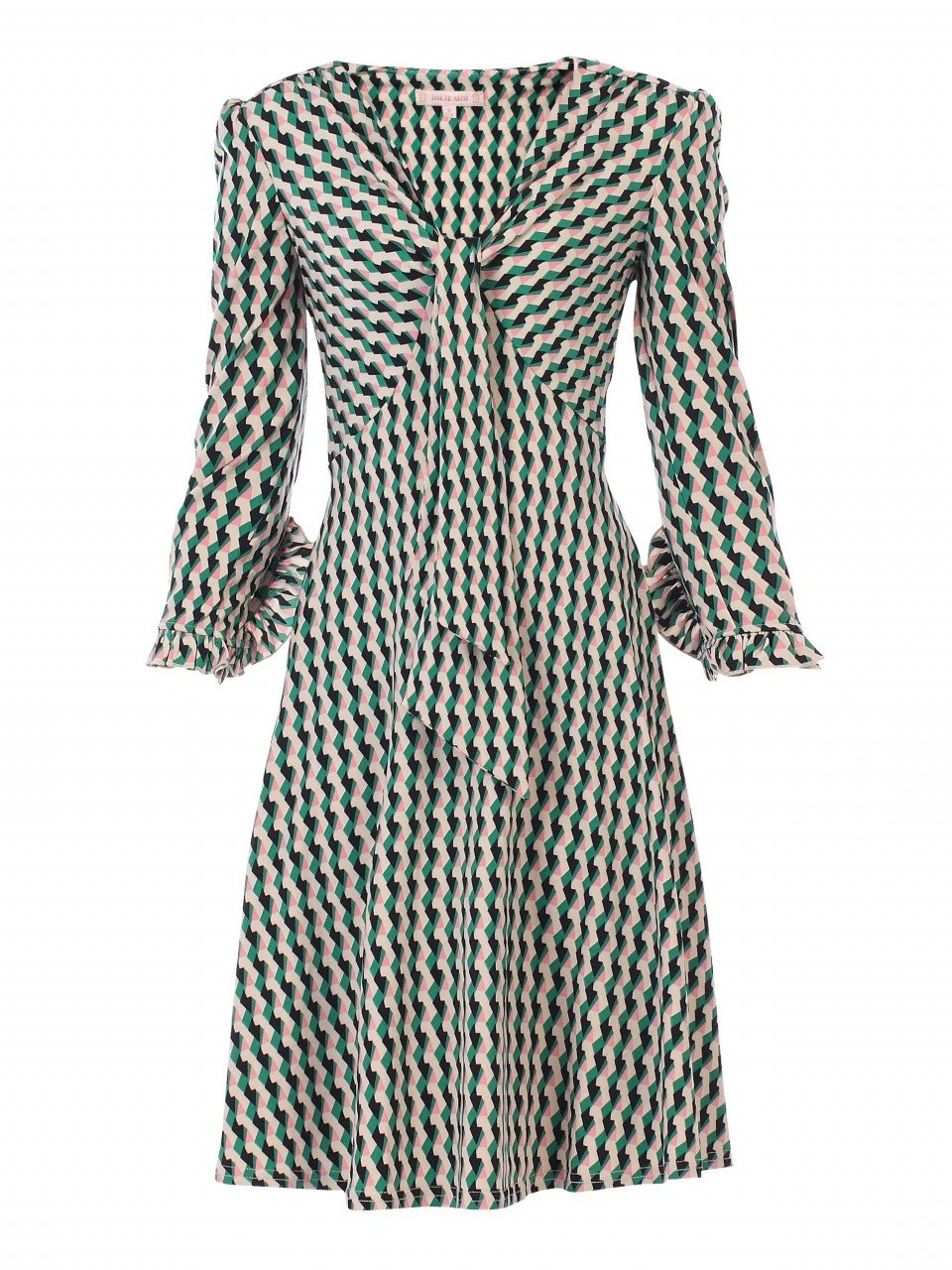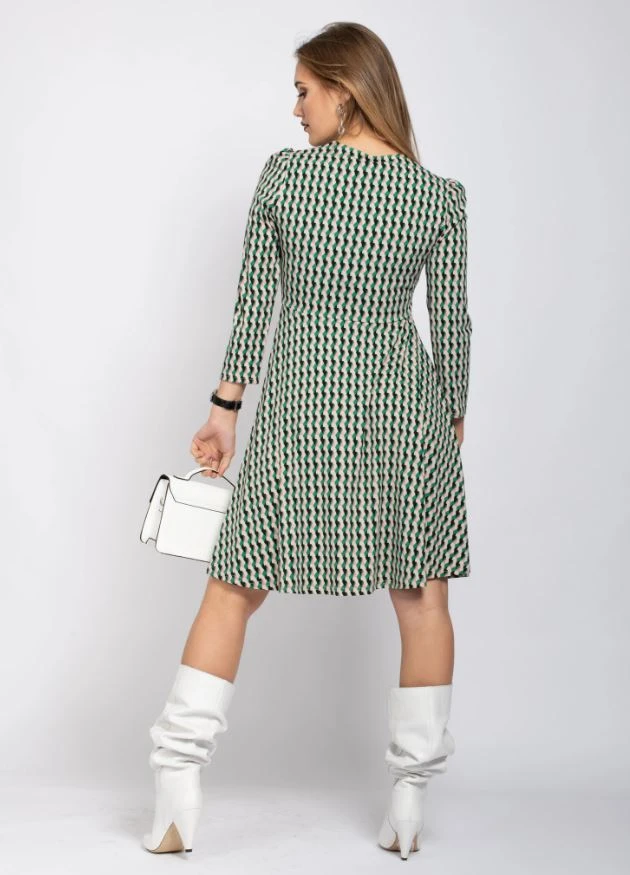 Embolden your workwear wardrobe with this striking printed dress from Jolie Moi. Soft and stretchy, this jersey fabric dress features a flattering V-neckline with on-trend tie knot front and an empire line silhouette that’s comfortable to wear.Â