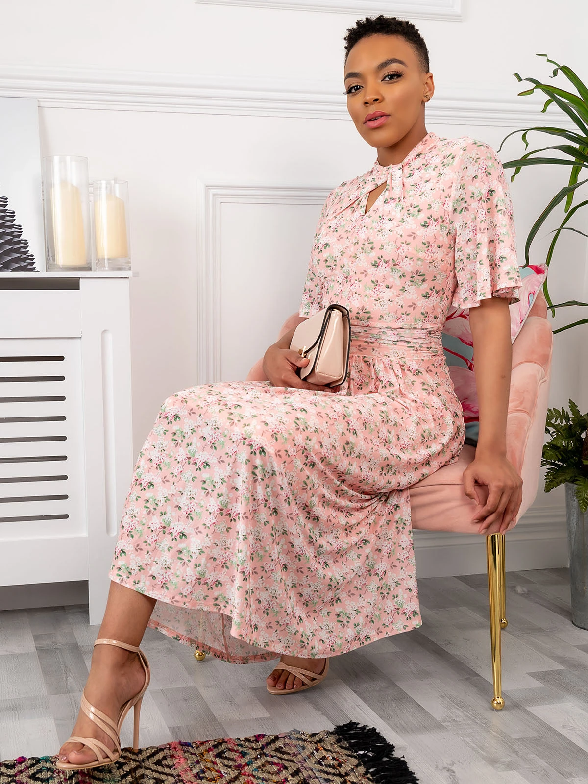 Decorated in an all over floral print and equipped with an elasticated waist to ensure a form-flattering silhouette, completed with a flattering funnel neckline with key hole detailing and flared elbow length sleeves, it is made from a soft and fluid blended mesh fabric and is a pretty piece you’ll reach for again and again.