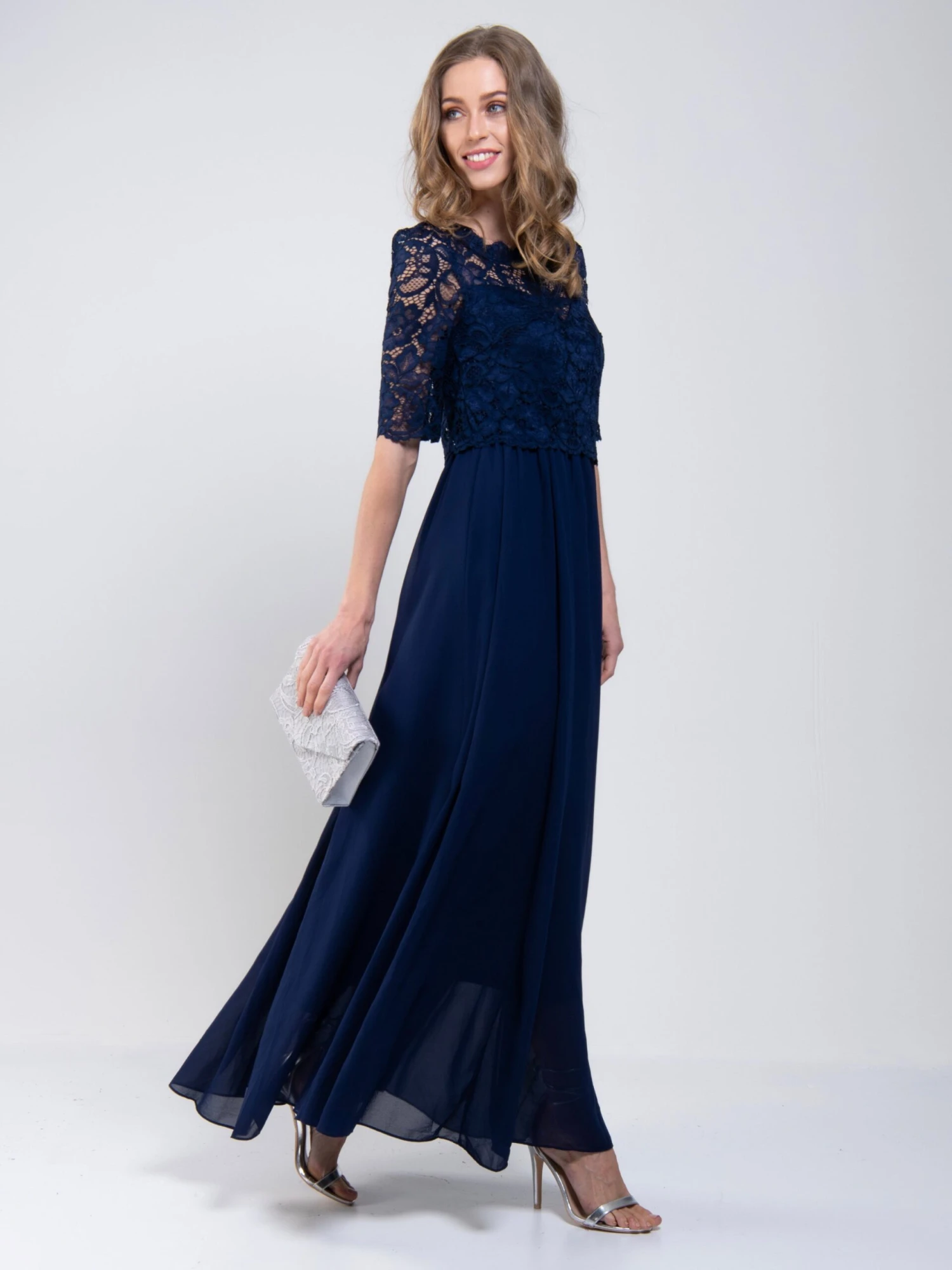 Make those special events unforgettable with this striking Jolie Moi dress. Cut to a flared full length and crafted from soft stretchy lace, this piece is designed with a contrast lace bodice finished with a ribbon tie detailing at the back while the floor-lengthened cut beautifully elongates your silhouette. Completed with concealed back zip and elbow length sleeves